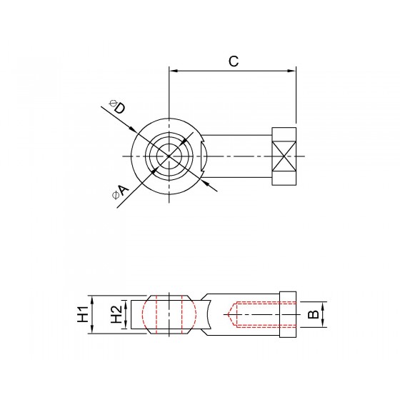 | Model No. | Hole Dia ( ∅A ) | ∅D | H1 | H2 | C | Thread ( B ) |