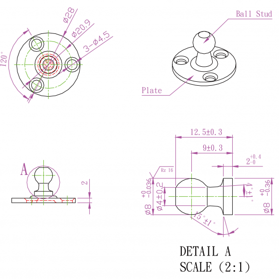 | Model No. | Ball Stud Material | Plate Material | Surface Treatment |