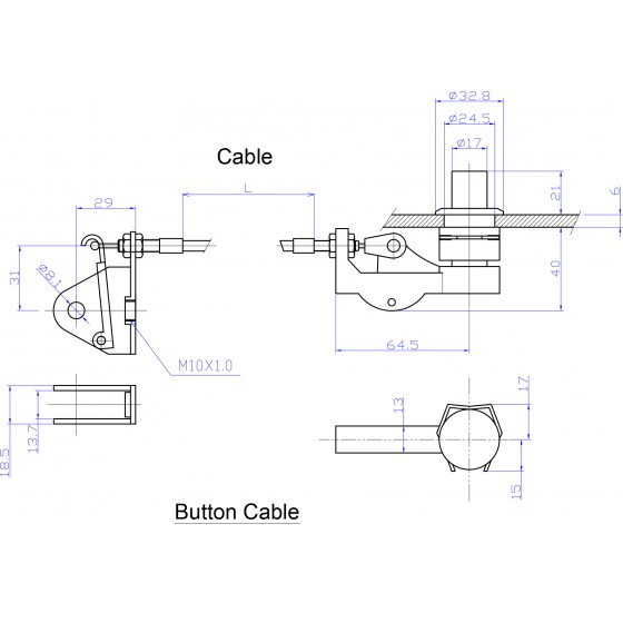 | BOL-BUTTON CABLE-1M | 1000 | M10X1.0 | NYLON | Black Plastic |