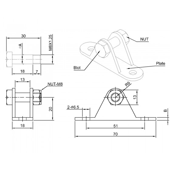 | BKT-13 ZINC | 8 | 2.5 | 12L14 | P-O | White Zinc Plated | |