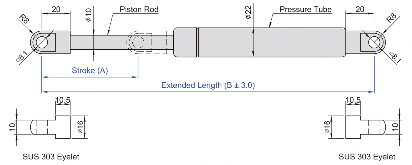SUPERSEN stainless steel gas spring’s efficiency of corrosion will ensure a high level of protection including the acid or alkaline environment.
