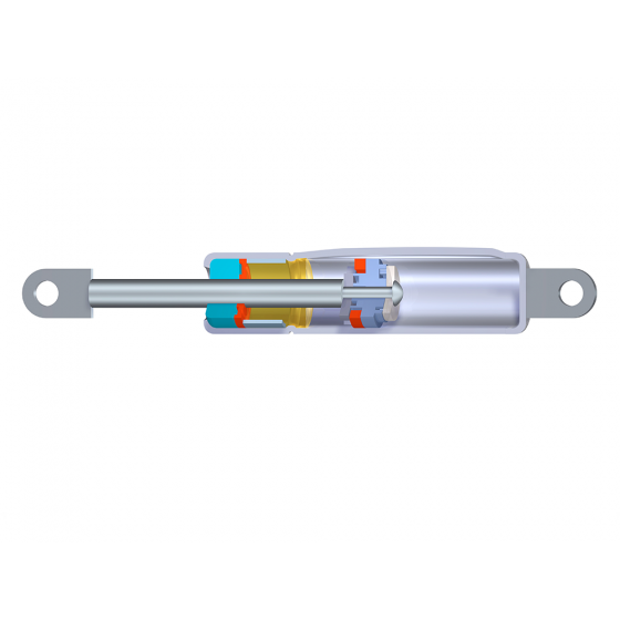 STABILUS 自由型-動態阻尼氮氣缸 (Dynamic Gas Spring) 具有支撐及推力功能,但不具定位功能,內部填充適當壓力的氮氣,使得氣壓棒在壓縮時產生反力,這個反力可用來支撐或抵銷負載在氣壓棒上的重物,並利用缸體內部油量和活塞孔大小及管內的"特殊的油溝槽設計" 產生雙向全程動態阻尼功效,並在氣壓棒完全伸展之末端會有車減速之功能,確保操作人員安全,本產品目前廣泛運用於全球汽車工業之正廠使用。