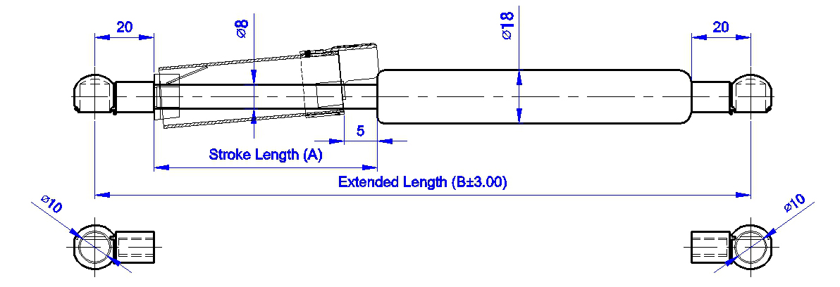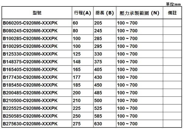 2.請客戶於詢價時,告知氮氣缸所需之壓力F1(N) , (9.8 牛頓(N)=1公斤(KG)=2.2磅(LBS) / 長度單位(mm)