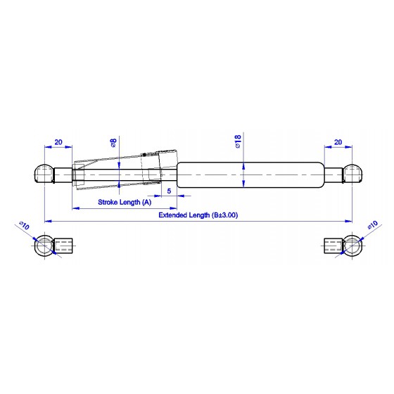 1.SUPERSEN 自由型安全開關氮氣缸氣壓棒 0818 系列係指軸心直徑為8 mm, 外管直徑為18 mm 的氮氣缸並於活塞桿外部加裝套管扣環增加安全性,其壓力介質為氮氣(N2), 阻尼介質為液壓油(OIL),適用溫度為 - 20℃~+80℃,允許長度公差範圍為±3mm。