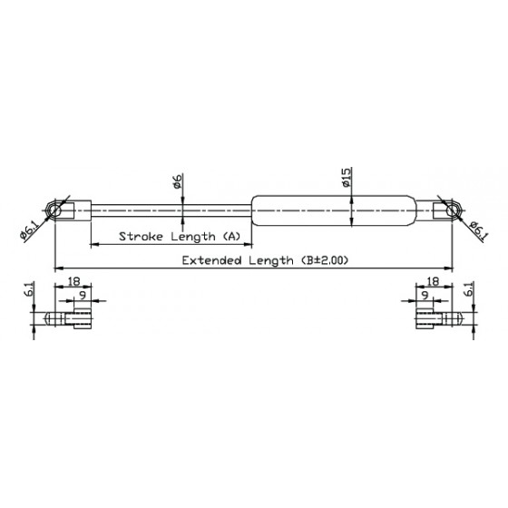 4. 請客戶於詢價時,告知氮氣缸所需之壓力F1(N) , (9.8 牛頓(N)=1公斤(KG)=2.2磅(LBS) / 長度單位(mm)