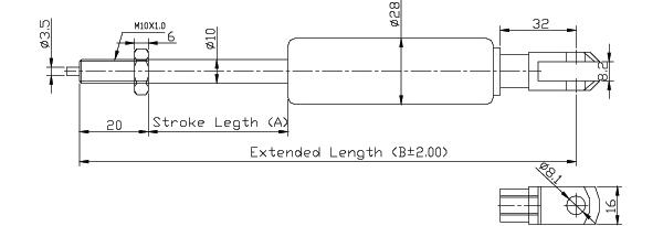 | 型號 | 行程 (A) | 總長 (B) | 壓力承製範圍 (N) |
