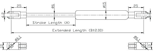 4. 請客戶於詢價時,告知氮氣缸所需之壓力F1(N) , (9.8 牛頓(N)=1公斤(KG)=2.2磅(LBS) / 長度單位(mm)