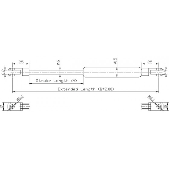 1. SUPERSEN 自由型氮氣缸氣壓棒 0615 系列係指軸心直徑為6mm, 外管直徑為15mm 的氮氣缸,其壓力介質為氮氣(N2), 阻 尼介質為液壓油(OIL),適 用溫度為 - 20℃~+80℃,允許長度公差範圍為±2mm。