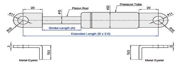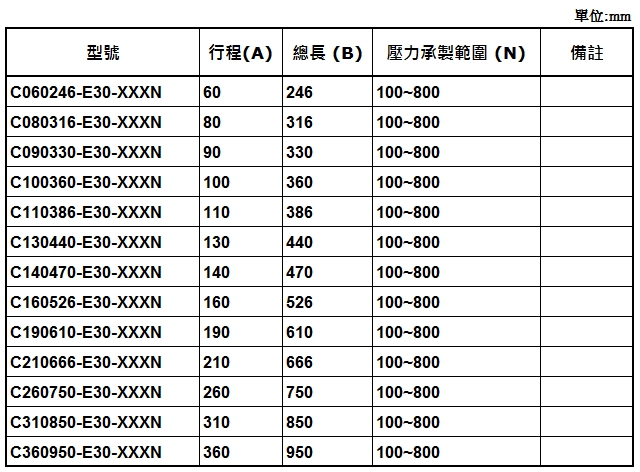 4. 請客戶於詢價時,告知氮氣缸所需之壓力F1(N) , (9.8 牛頓(N)=1公斤(KG)=2.2磅(LBS) / 長度單位(mm)