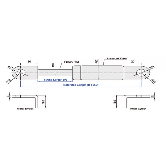 1. SUPERSEN 自由型氮氣缸氣壓棒 1022 系列係指軸心直徑為10mm, 外管直徑為22mm 的氮氣缸,其壓力介質為氮氣(N2), 阻 尼介質為液壓油(OIL),適 用溫度為 - 20℃~+80℃,允許長度公差範圍為±2mm。