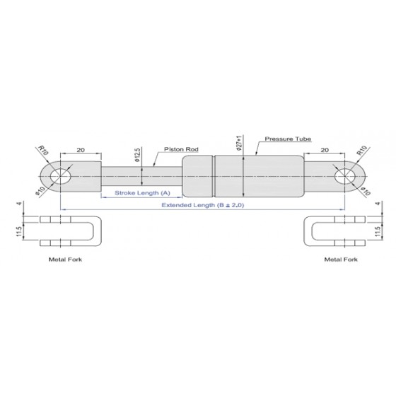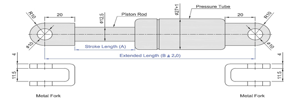 4. 請客戶於詢價時,告知氮氣缸所需之壓力F1(N) , (9.8 牛頓(N)=1公斤(KG)=2.2磅(LBS) / 長度單位(mm)