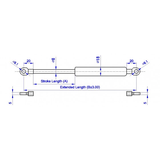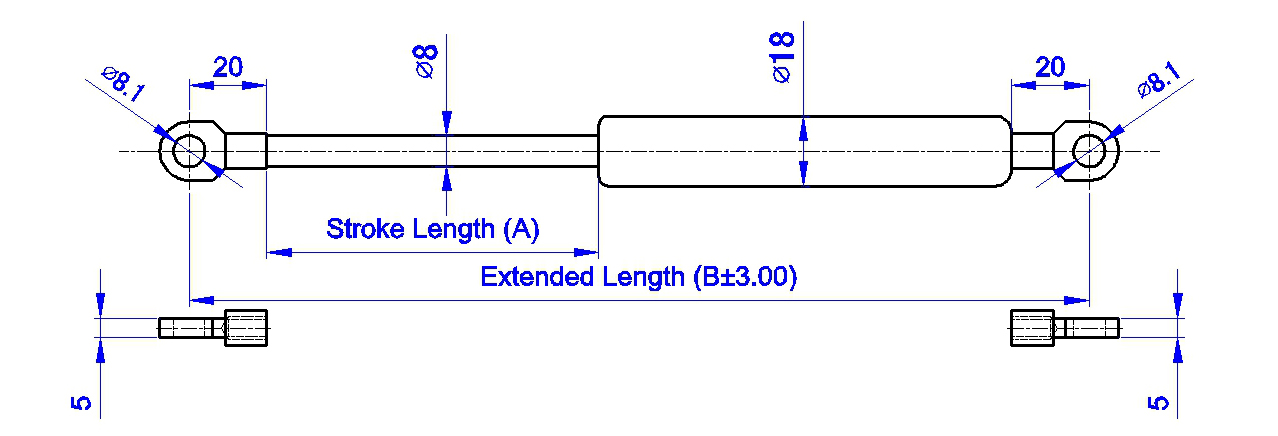 1. SUPERSEN 自由型氮氣缸氣壓棒 0818 系列係指軸心直徑為8mm, 外管直徑為18mm 的氮氣缸,其壓力介質為氮氣(N2), 阻 尼介質為液壓油(OIL),適 用溫度為 - 20℃~+80℃,允許長度公差範圍為±3mm。