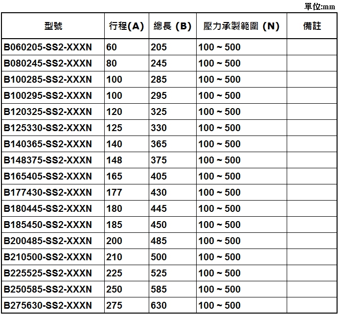 氮氣缸 8mmx 18mm (100N~700N) 系列
