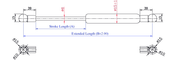 4. 請客戶於詢價時,告知氮氣缸所需之壓力F1(N) , (9.8 牛頓(N)=1公斤(KG)=2.2磅(LBS) / 長度單位(mm)