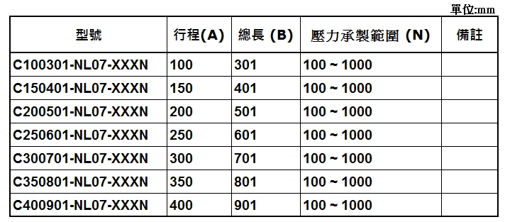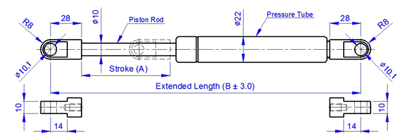 4. 請客戶於詢價時,告知氮氣缸所需之壓力F1(N) , (9.8 牛頓(N)=1公斤(KG)=2.2磅(LBS) / 長度單位(mm)
