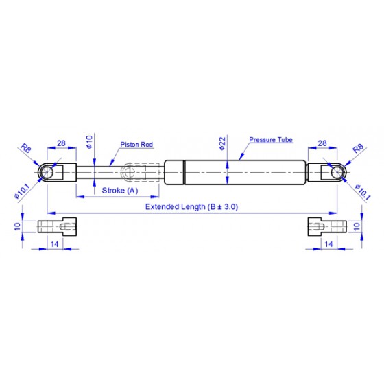 1. SUPERSEN 自由型氮氣缸氣壓棒 1022 系列係指軸心直徑為10mm, 外管直徑為22mm 的氮氣缸,其壓力介質為氮氣(N2), 阻 尼介質為液壓油(OIL),適 用溫度為 - 20℃~+80℃,允許長度公差範圍為±3mm。