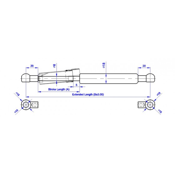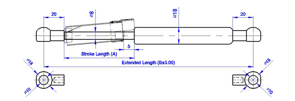 1.SUPERSEN 自由型安全開關氮氣缸氣壓棒 0818 系列係指軸心直徑為8 mm, 外管直徑為18 mm 的氮氣缸並於活塞桿外部加裝套管扣環增加安全性,其壓力介質為氮氣(N2), 阻尼介質為液壓油(OIL),適用溫度為 - 20℃~+80℃,允許長度公差範圍為±3mm。