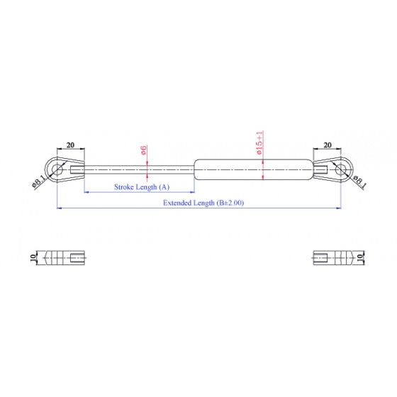 4. 請客戶於詢價時,告知氮氣缸所需之壓力F1(N) , (9.8 牛頓(N)=1公斤(KG)=2.2磅(LBS) / 長度單位(mm)