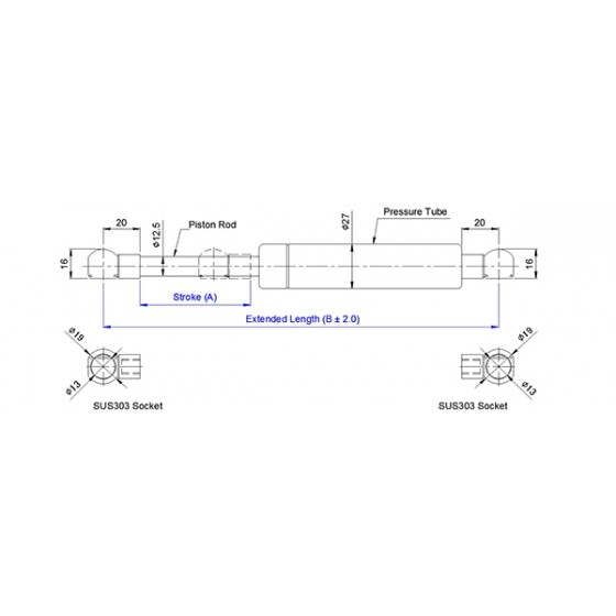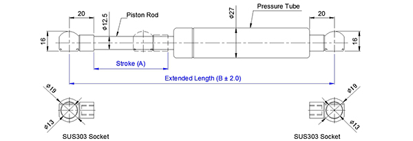 1. SUPERSEN 自由型不鏽鋼氮氣缸氣壓棒 1227 系列係指軸心直徑為12.5mm, 外管直徑為27mm 的氮氣缸,其壓力介質為氮氣(N2), 阻尼介質為液壓油(OIL),適 用溫度為 - 20℃~+80℃,允許長度公差範圍為±2mm。