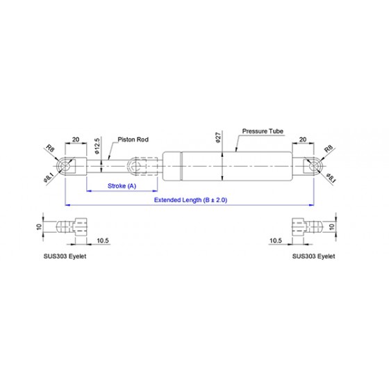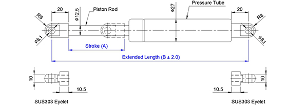 琥盛企業為方便客戶選用適用於該係列不鏽鋼氣壓棒(氮氣缸)之兩端配件及螺栓,共開發出百種以上之產品供客戶輕易選用,客戶亦可自行點選網頁配件區及螺栓區參考設計。 我司在此建議使用國際通用配件及螺栓料號如下:
