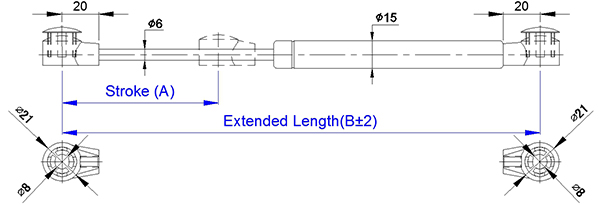1. 自由型全行程等速氣壓棒 0615 系列係指軸心直徑為6mm, 外管直徑為15mm的氮氣缸,其壓力介質為氮氣(N2), 阻尼介質為液壓油(OIL),適用溫度為 - 20℃~+80℃,允許長度公差範圍為±2mm。