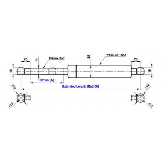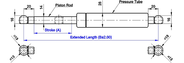 4. 請客戶於詢價時,告知氮氣缸所需之壓力F1(N) , (9.8 牛頓(N)=1公斤(KG)=2.2磅(LBS) / 長度單位(mm)