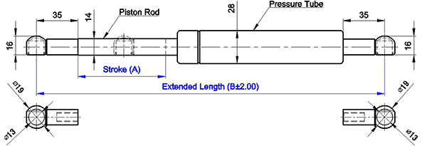 4. 請客戶於詢價時,告知氮氣缸所需之壓力F1(N) , (9.8 牛頓(N)=1公斤(KG)=2.2磅(LBS) / 長度單位(mm)