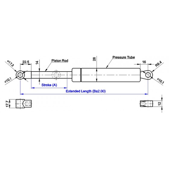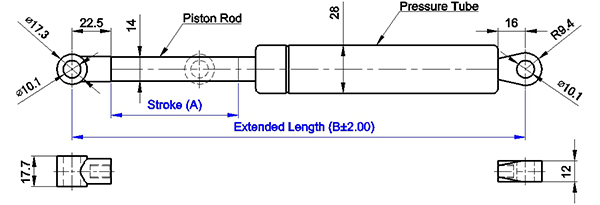 4. 請客戶於詢價時,告知氮氣缸所需之壓力F1(N) , (9.8 牛頓(N)=1公斤(KG)=2.2磅(LBS) / 長度單位(mm)