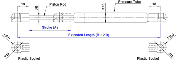 1. 自由型全行程等速氣壓棒 0615 系列係指軸心直徑為6mm, 外管直徑為15mm的氮氣缸,其壓力介質為氮氣(N2), 阻尼介質為液壓油(OIL),適用溫度為 - 20℃~+80℃,允許長度公差範圍為±2mm。
