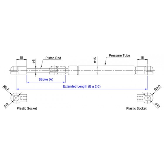 2. 請客戶於詢價時,告知氮氣缸所需之壓力F1(N) , (9.8 牛頓(N)=1公斤(KG)=2.2磅(LBS) / 長度單位(mm)