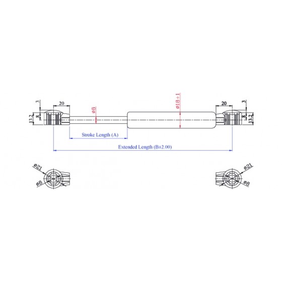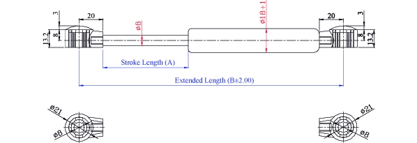 1. SUPERSEN 自由型不鏽鋼氮氣缸氣壓棒 0818 系列係指軸心直徑為8mm, 外管直徑為18mm 的氮氣缸,其壓力介質為氮氣(N2), 阻尼介質為液壓油(OIL),適 用溫度為 - 20℃~+80℃,允許長度公差範圍為±2mm。