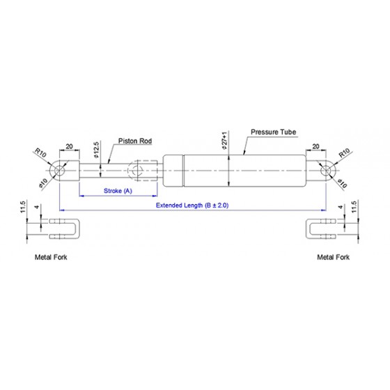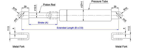 4. 請客戶於詢價時,告知氮氣缸所需之壓力F1(N) , (9.8 牛頓(N)=1公斤(KG)=2.2磅(LBS) / 長度單位(mm)