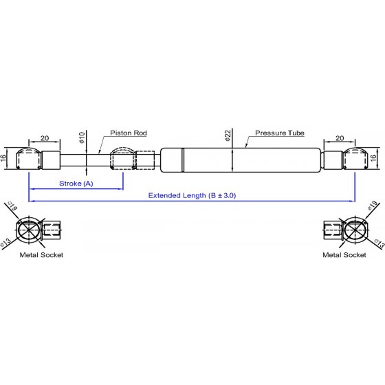 | 型號 | 行程 (A) | 總長 (B) | 壓力承製範圍 (N) | 產品淨重 (g) | 備註 |
