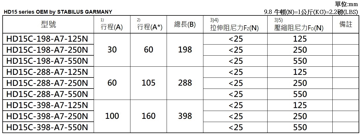 STABILUS油壓型阻尼棒