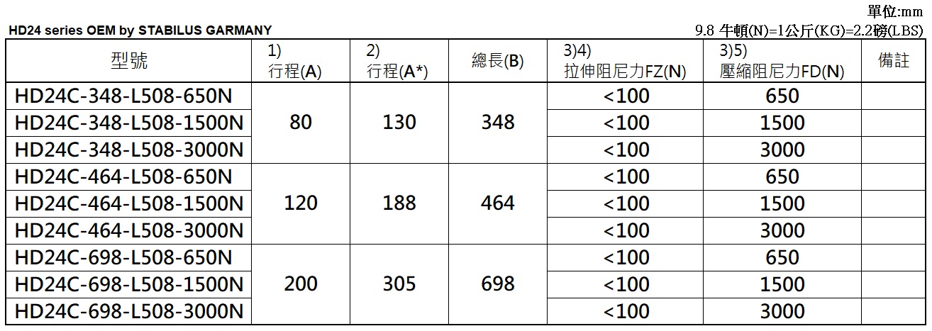 10mm x 24mm (標準阻尼) 請點入選擇搭配接頭類型