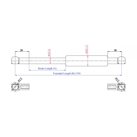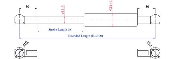 4. 請客戶於詢價時,告知氮氣缸所需之壓力F1(N) , (9.8 牛頓(N)=1公斤(KG)=2.2磅(LBS) / 長度單位(mm)