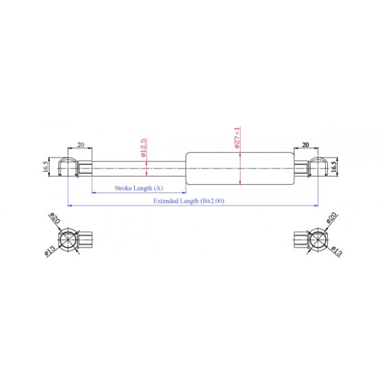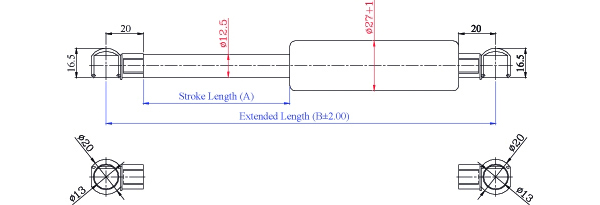 4. 請客戶於詢價時,告知氮氣缸所需之壓力F1(N) , (9.8 牛頓(N)=1公斤(KG)=2.2磅(LBS) / 長度單位(mm)