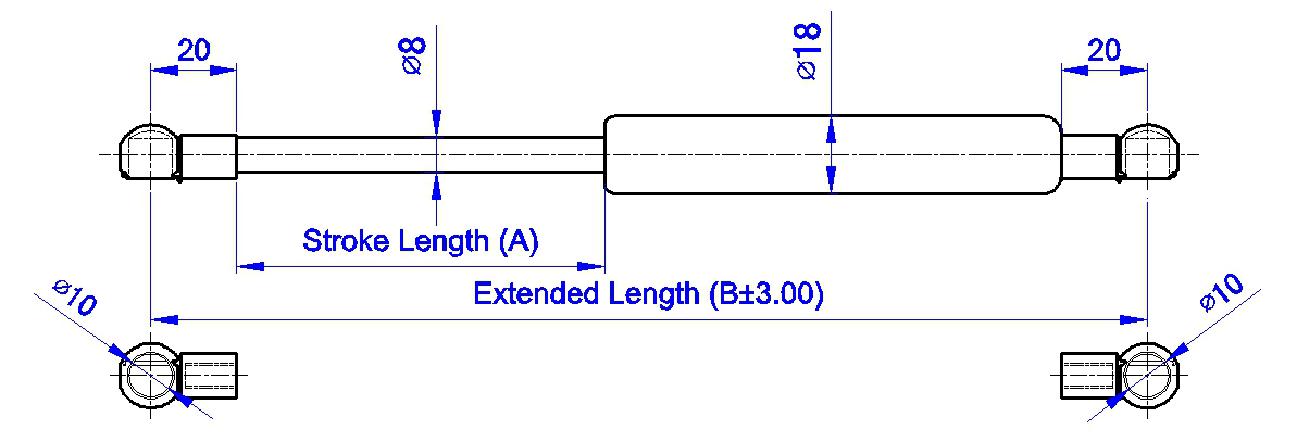 琥盛企業為方便客戶選用適用於該係列氣壓棒(氮氣缸)之兩端配件及螺栓,共開發出百種以上之產品供客戶輕易選用,客戶亦可自行點選網頁配件區及螺栓區參考設計。 我司在此建議使用國際通用配件及螺栓料號如下: