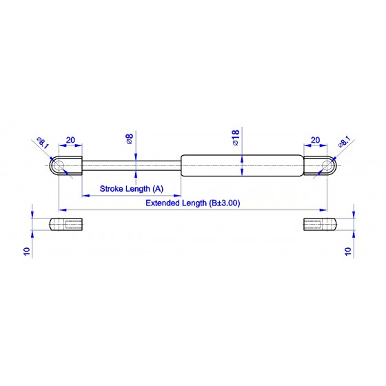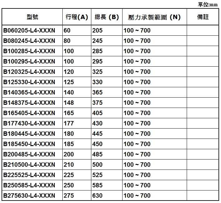 1. SUPERSEN 自由型氮氣缸氣壓棒 0818 系列係指軸心直徑為8mm, 外管直徑為18mm 的氮氣缸,其壓力介質為氮氣(N2), 阻 尼介質為液壓油(OIL),適 用溫度為 - 20℃~+80℃,允許長度公差範圍為±3mm。