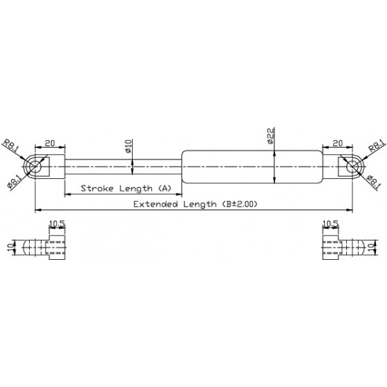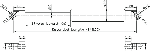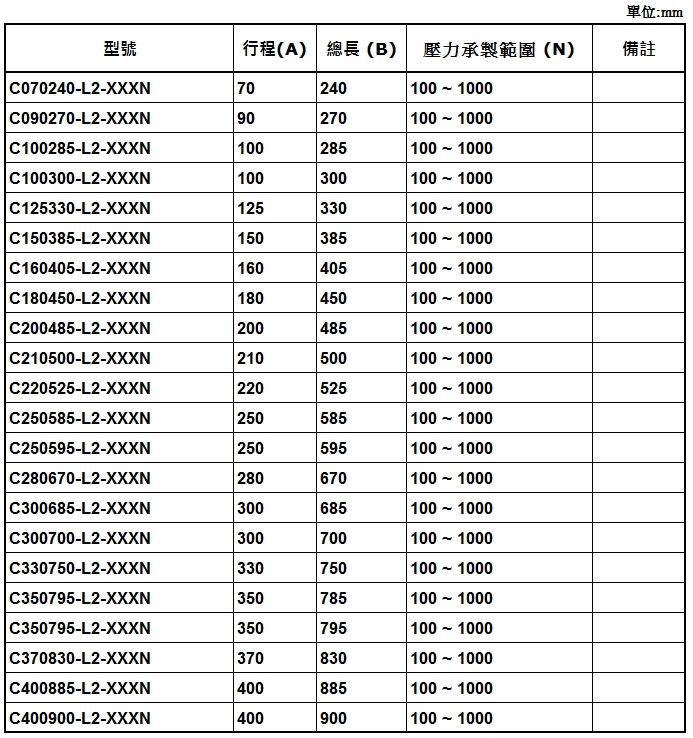 4. 請客戶於詢價時,告知氮氣缸所需之壓力F1(N) , (9.8 牛頓(N)=1公斤(KG)=2.2磅(LBS) / 長度單位(mm)