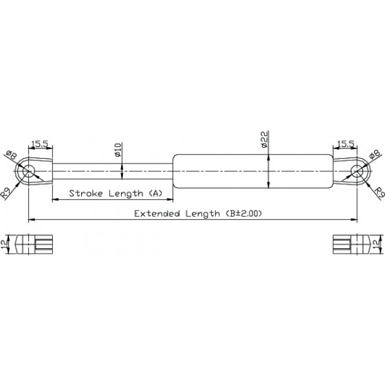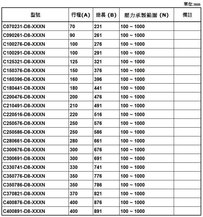 4. 請客戶於詢價時,告知氮氣缸所需之壓力F1(N) , (9.8 牛頓(N)=1公斤(KG)=2.2磅(LBS) / 長度單位(mm)