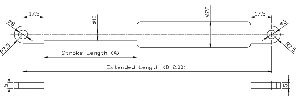 下列規格為德國大廠STABILUS尺寸: 9.8 牛頓(N)=1公斤(KG)=2.2磅(LBS)