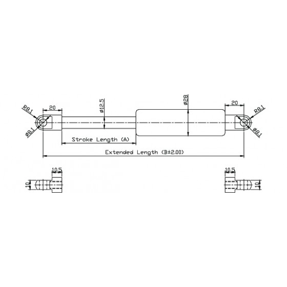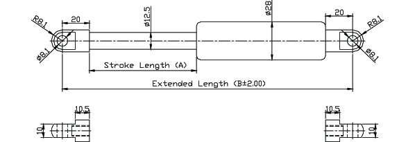 4. 請客戶於詢價時,告知氮氣缸所需之壓力F1(N) , (9.8 牛頓(N)=1公斤(KG)=2.2磅(LBS) / 長度單位(mm)