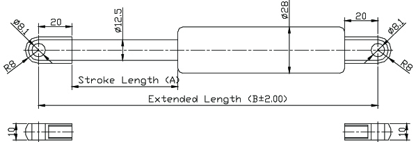 4. 請客戶於詢價時,告知氮氣缸所需之壓力F1(N) , (9.8 牛頓(N)=1公斤(KG)=2.2磅(LBS) / 長度單位(mm)