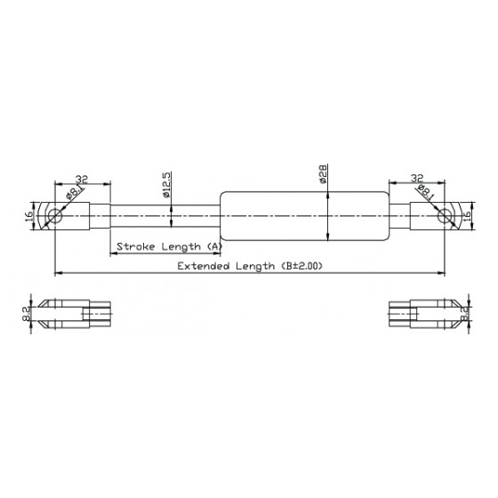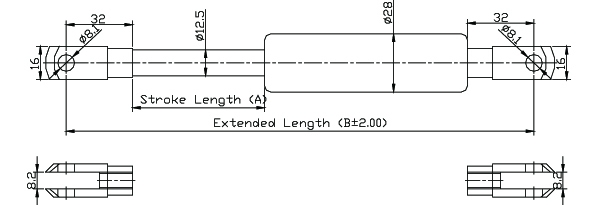 4. 請客戶於詢價時,告知氮氣缸所需之壓力F1(N) , (9.8 牛頓(N)=1公斤(KG)=2.2磅(LBS) / 長度單位(mm)