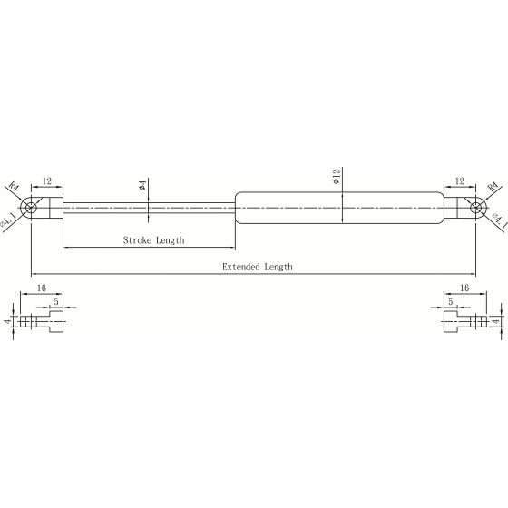 4. 請客戶於詢價時,告知氮氣缸所需之壓力F1(N) , (9.8 牛頓(N)=1公斤(KG)=2.2磅(LBS) / 長度單位(mm)
