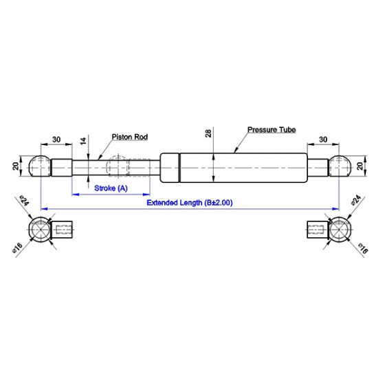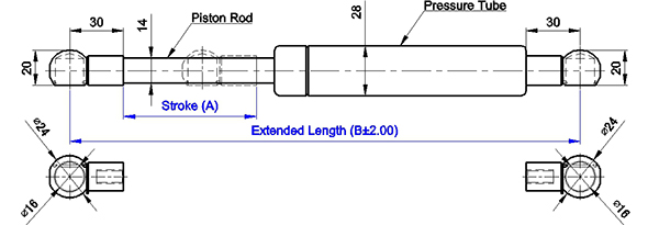 4. 請客戶於詢價時,告知氮氣缸所需之壓力F1(N) , (9.8 牛頓(N)=1公斤(KG)=2.2磅(LBS) / 長度單位(mm)