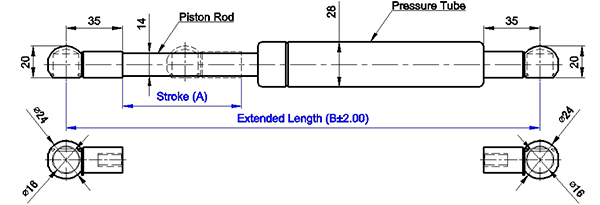 4. 請客戶於詢價時,告知氮氣缸所需之壓力F1(N) , (9.8 牛頓(N)=1公斤(KG)=2.2磅(LBS) / 長度單位(mm)